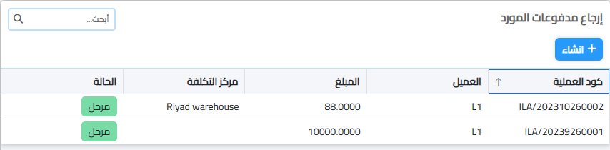 تتيح لك هذه الصفحة إدارة عملية استرداد المبالغ المدفوعة للموردين. يمكنك إنشاء وتسجيل تفاصيل استرداد الدفعات، وعرض تفاصيل الدفعات المستردة، وتنظيمها.