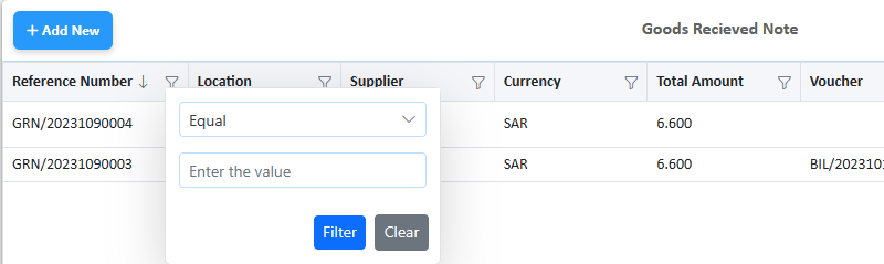 Choose the GRN reference from the dropdown list, which was created in the inventory module.
