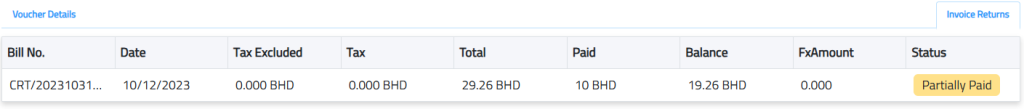 On selecting the cost center, only the unpaid bills of that cost center will be visible.