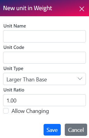 - The first unit will be the base unit. 1 unit category can only have 1 base unit.