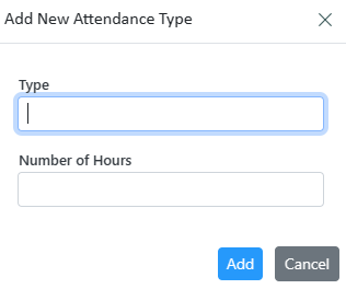 Enter the attendance type and the number of hours and click on the add button to save the record.