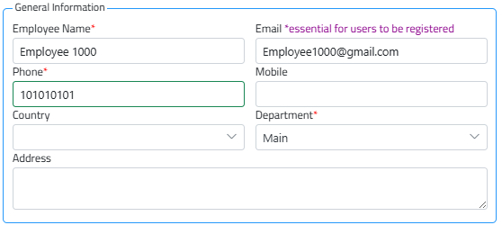 To register an employee as user, an email address is essential, This allows the employee to access the system and use its features.