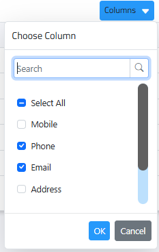 By using a column filter, you can select which columns to display or hide