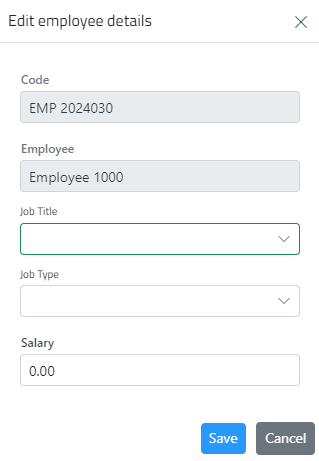 The employee code and the name cannot be edited from this page, to edit this information go to the employee page.