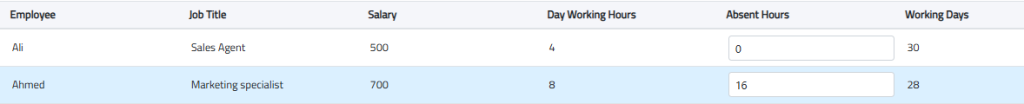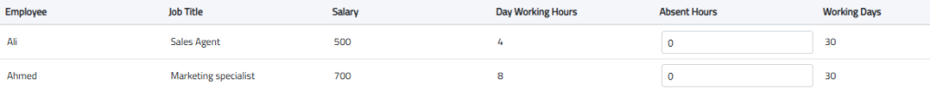 You can enter absence hours, and the system will automatically calculate the working hours based on this data.