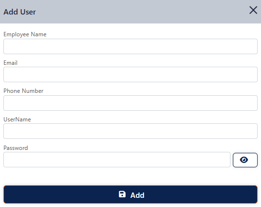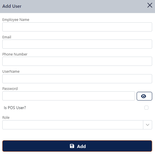 Enter the Employee Name, Email, Phone Number, UserName, Password, select if the user is POS user and assign the role.