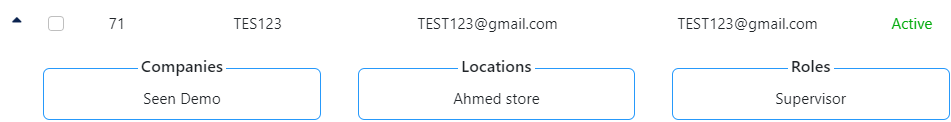 - Locations: Lists the specific locations (e.g., branches or offices) that the user has access to within the company.