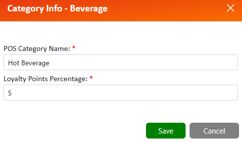 Enter the Category name and if the category needs to have a loyalty points parentage, then enter the amount and click on the save button.