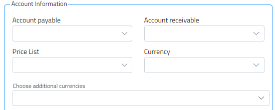 - Enter accounting information: select accounts payable and accounts receivable.