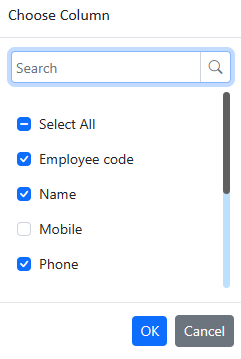 The required columns can be selected to customize the view of the columns to be displayed.