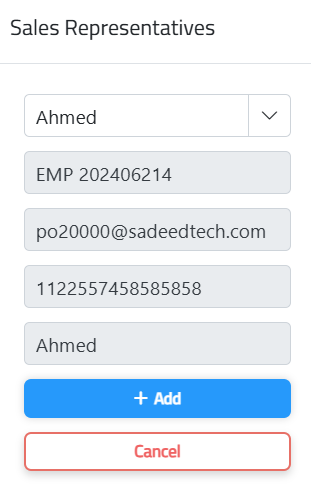 The Sales Representative page allows you to manage and track each employee’s sales activities, Sales representatives can be assigned in sales orders, sales quotations, delivery notes, and sales returns, providing comprehensive oversight of sales processes.