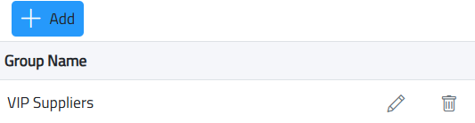 The suppliers Groups page allows you to add groups, such as VIP suppliers. You can then use these groups when adding a supplier.