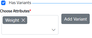 After selecting the variant, click on “Add Variant,” and a popup window will appear where you can add variant options, you can choose more than one attribute.