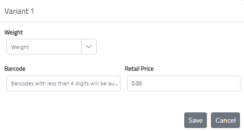 For example, when selecting the “Color” variant, all related color options will appear. Then, enter the barcode and retail price for the selected variant.