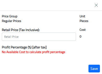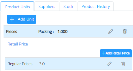 By viewing the Product units, the user can also verify which unit of measurement they are adding the retail price on.