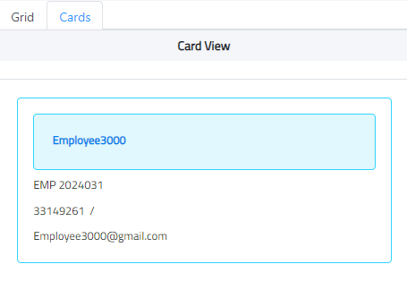 - Cards View: Shows the information in card-based format, offering a more visual layout.