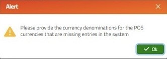 Note: if all the currency denominations are not present then the system will show the following alert message when enabling the currency denominations.