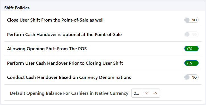 Requires users to complete a cash handover process before closing their shift, ensuring that all cash is accounted for and transferred properly.