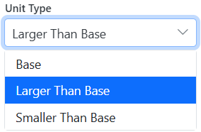 - The new units can be of 3 types: base, larger than the base, and smaller than the base.