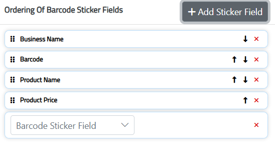 The Custom barcode sticker button is to set custom settings for barcodes for specific locations.