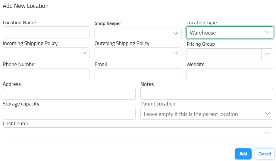Depending on the location type, the price groups can be allocated. Only shop and warehouse location types can have location type.