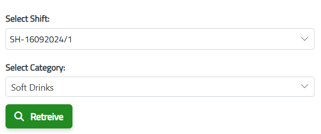 Select the shift from the list of active shifts and select the Category from the list of categories.