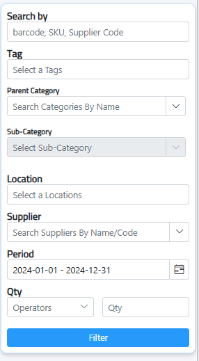 8. Qty: Apply quantity filters to focus on specific amounts or ranges of items.