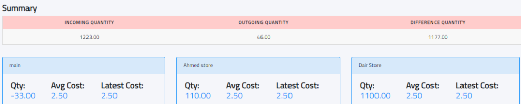 QTY, AVG Cost, & Latest Cost: Displays the quantity, average cost, and latest cost per location.