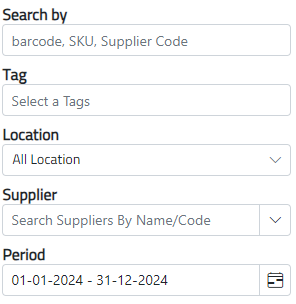 6. Supplier: Select the supplier to filter data related to specific vendors.