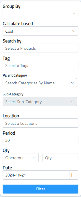 8. Qty: Apply quantity filters to focus on specific amounts or ranges of items.