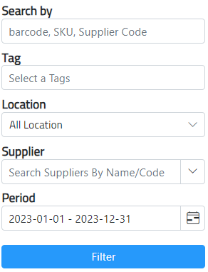 - Supplier: Select the supplier to filter data related to specific vendors.