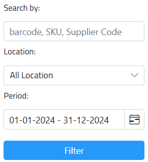 - Search by: Filter by specific products, barcode or Supplier code.