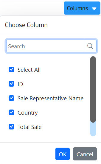 Select the columns to be visible