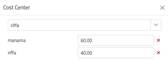 Select the Cost Center. you can distribute payments across multiple cost centers or departments by specifying percentages, the system will automatically divide the amount accordingly.