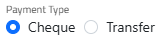 - If you select a bank account, it will show options for transfer or cheque. If it is a cheque, you can write the cheque number in the external code field.