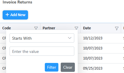 This page allows you to manage invoices for returned items from customers. When a return is processed, the invoice for the original purchase is updated to reflect the returned items. This may include issuing a refund, credit, or replacement for the returned goods.