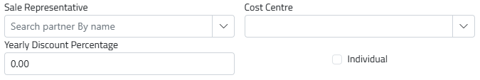 You can only change/choose cost center , sales representative, enter yearly percentage discount and choose whether it is individual.