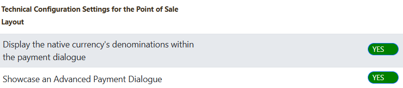 When the policy is enabled, the system allows users to enter the payment amount in the payments section using either the numeric pad or the buttons that display the native denominations. This functionality provides users with flexibility in selecting their preferred method of inputting the payment amount.