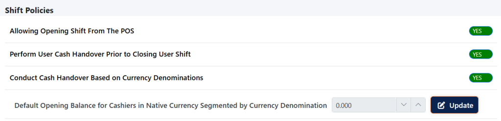 Requires users to complete a cash handover process before closing their shift, ensuring that all cash is accounted for and transferred properly.