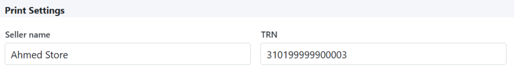 Enter the Seller/location name and enter the TRN. Please make sure to click on the save button located at the top right of the page in order to save and apply the changes.