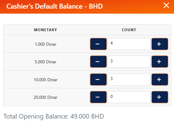 - If the Funds Reconciliation Based on Currency Denominations is disabled, then the user must enter the default Opening Balance for Cashiers in Native Currency.