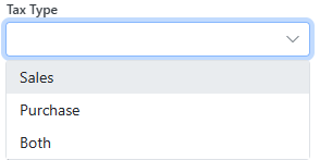 - Select the Tax type whether it is on purchases or sales or both.