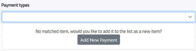 To add new payment method, type the name and click on “Add New Payment”