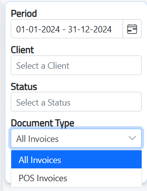- Document Type: Choose the type of document, either all invoices or only those from POS invoices only