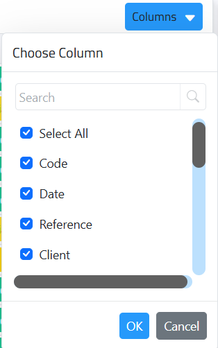 Click on the filter icon to open the filter and enter the value to filter for or use the search bar to find the desired record.