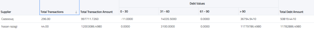 This page provides a detailed report on outstanding payables from to suppliers, categorized by the period of time have been overdue. This helps in tracking and managing supplier debts effectively.