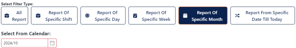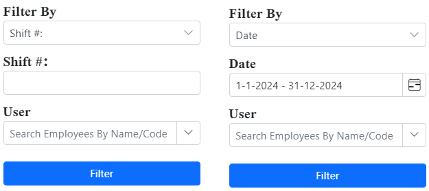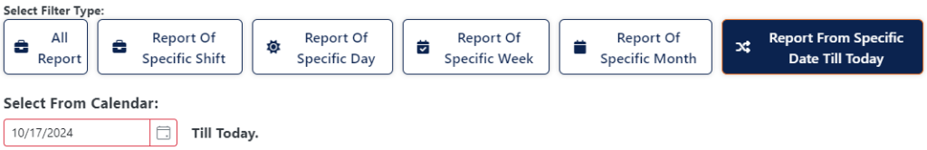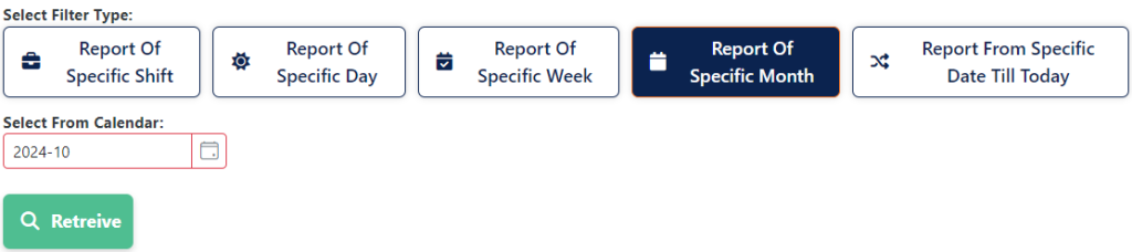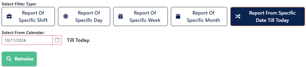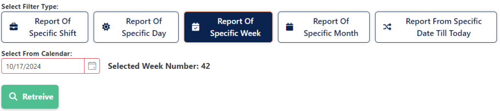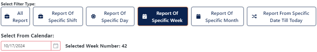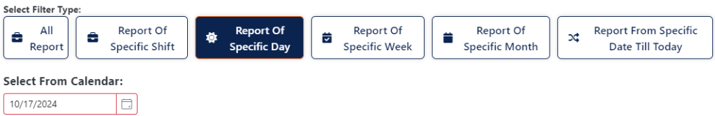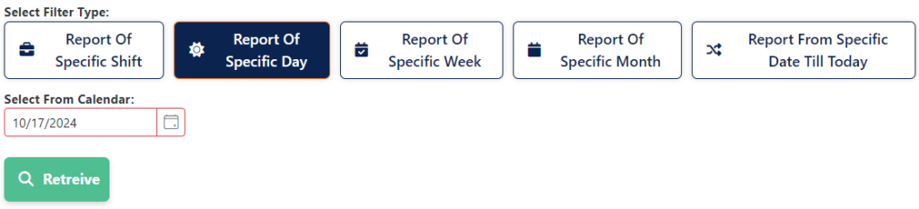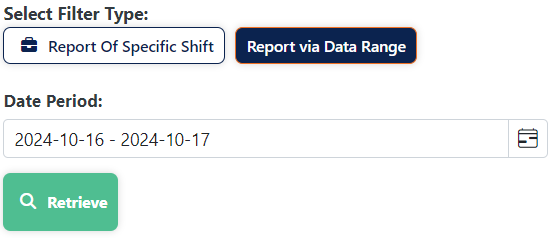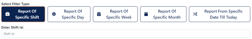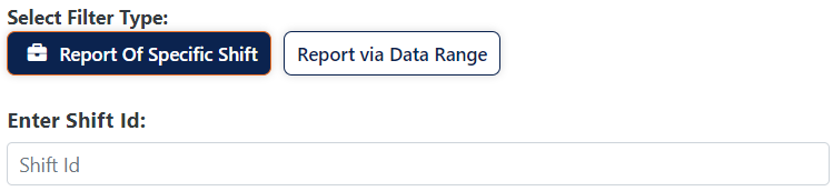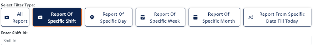 Filter reports either By Specific Shift: Enter the shift ID to retrieve the data.