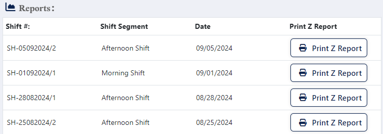 Please notice that printing a z-report requires all the active shifts to be closed since it’s naturally, an end of the day report.