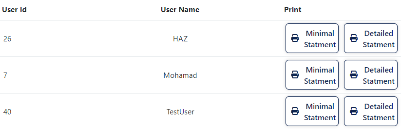 Minimal Statement: A summary of totals that can be printed. Detailed Totals Statement: Includes invoice details and can be printed for a more comprehensive report.