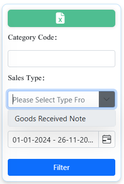 2. Sales Type: Filter the report by sales type: Goods received note.